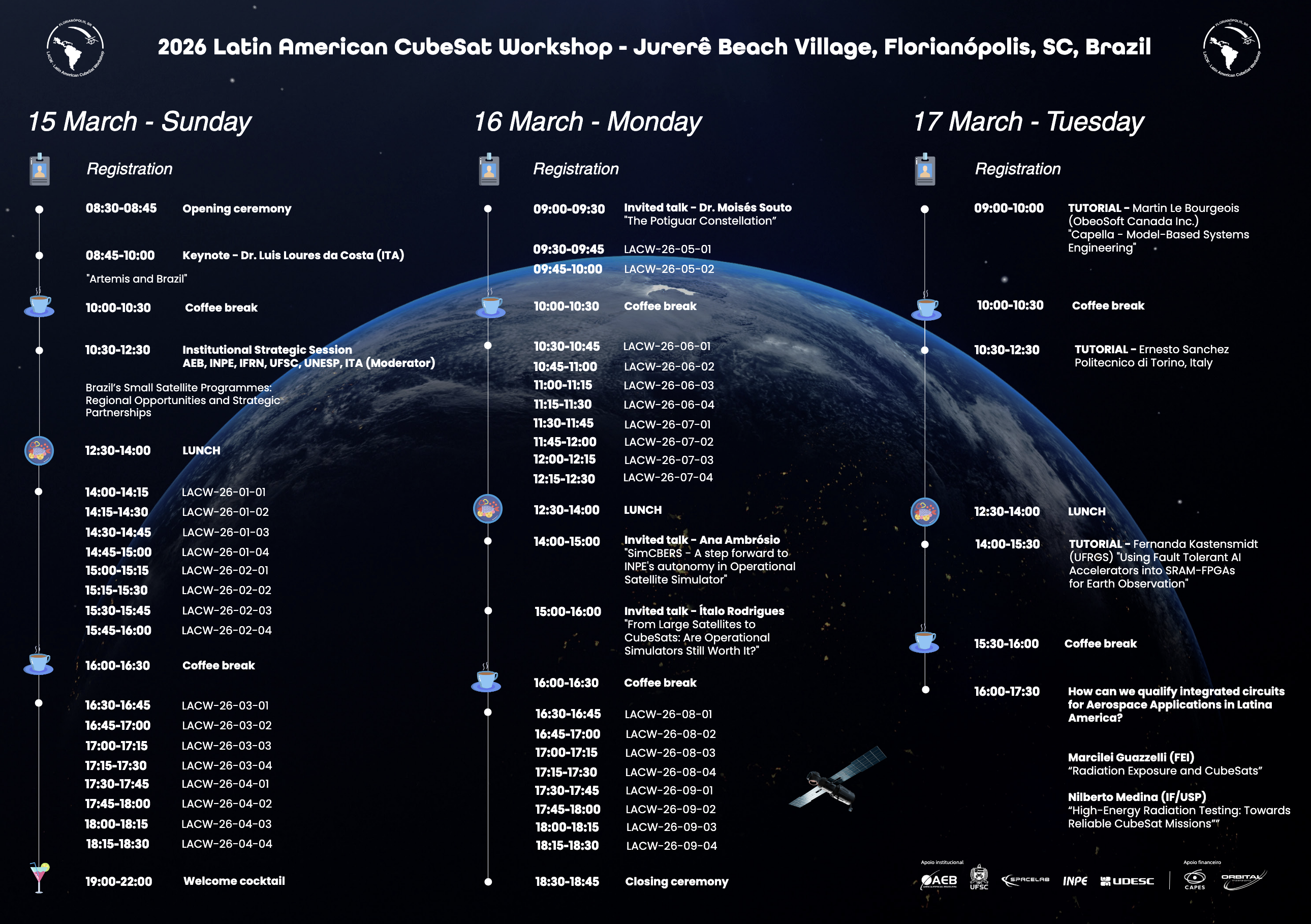 By bringing together the LACW and LATS communities, this edition will stimulate discussions on how to increase the reliability and engineering maturity of Latin American missions, bridging the gap between academic research, industry practices, and the requirements of launch providers.